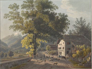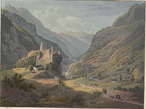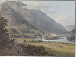 J.J. Meyer; J. G. Ebel, Voyage pittoresque dans le Canton des Grisons en Suisse: vers le lac Majeur et le lac de Come: sur les grandes routes novellement construites à travers les Cols de Splugen et de Bernhardin en 32 planches, Zürich 1827, S. 111 [Übers. durch DeepL/Autor]