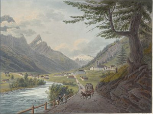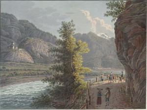 "Riva am Lago di Chiavenna ist der Stapelplatz für alle Waren, die aus Italien über den Comer See kommen oder dorthin gehen. Dieser Ort hat nur ein paar Häuser und der Reisende findet dort kaum eine angemessene Unterkunft, aber er kann sich dort Wagen und Pferde besorgen, um nach Chiavenna zu gelangen."