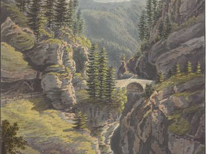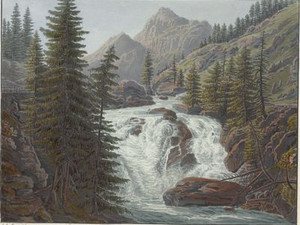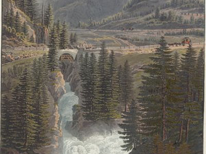 J.J. Meyer; J. G. Ebel, Voyage pittoresque dans le Canton des Grisons en Suisse: vers le lac Majeur et le lac de Come: sur les grandes routes novellement construites à travers les Cols de Splugen et de Bernhardin en 32 planches, Zürich 1827, S. 289 [Übers. durch DeepL/Autor]; https://www.in-lombardia.it/it/cascata-di-pianazzo [22.07.2024]; Jürg Simonett, "Splügenpass", in: Historisches Lexikon der Schweiz (HLS), Version vom 10.01.2013 [22.07.2024]
