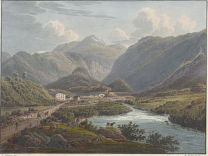 J.J. Meyer; J. G. Ebel, Voyage pittoresque dans le Canton des Grisons en Suisse: vers le lac Majeur et le lac de Come: sur les grandes routes novellement construites à travers les Cols de Splugen et de Bernhardin en 32 planches, Zürich 1827, S. 111-112